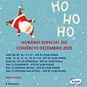 No sábado (20/12), as lojas devem ficar abertas até às 18h, e no domingo (21/12), até às 16h. Na véspera do Natal (24/12), a associação recomenda o funcionamento das lojas até às 18h. No Natal (25/12), o comércio de rua fecha.